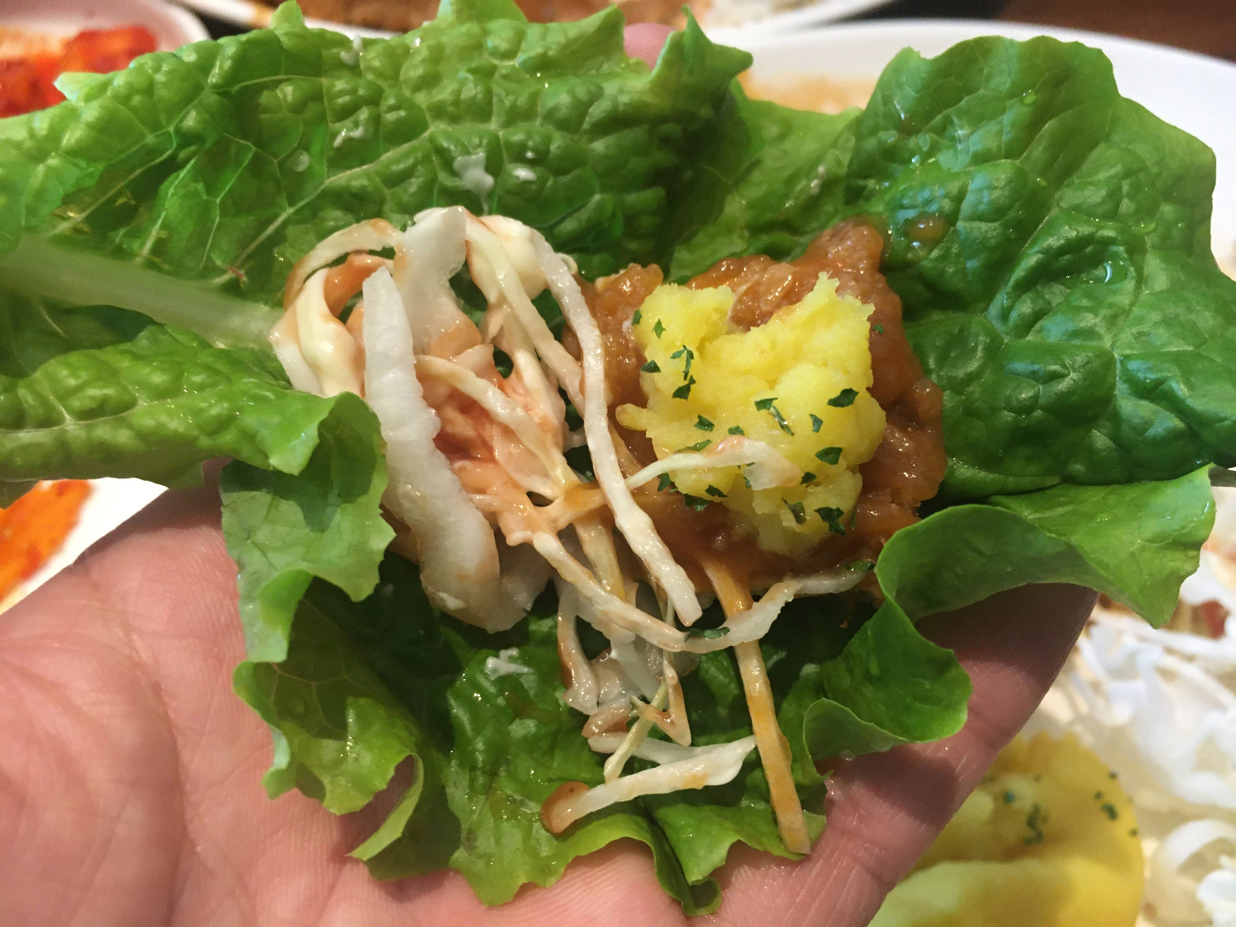 특이하게 쌈을 싸먹는 돈까스집이네요.